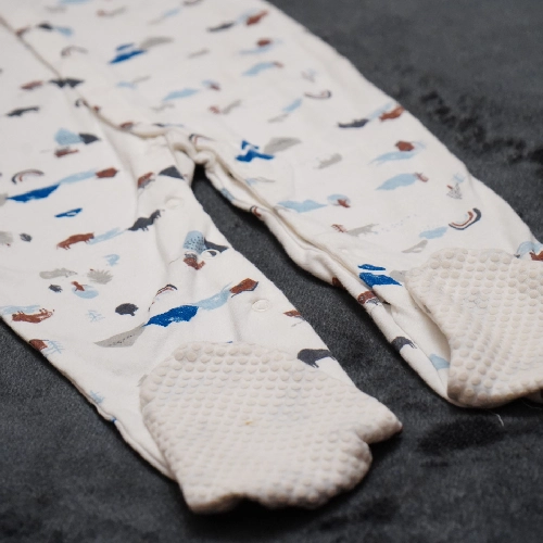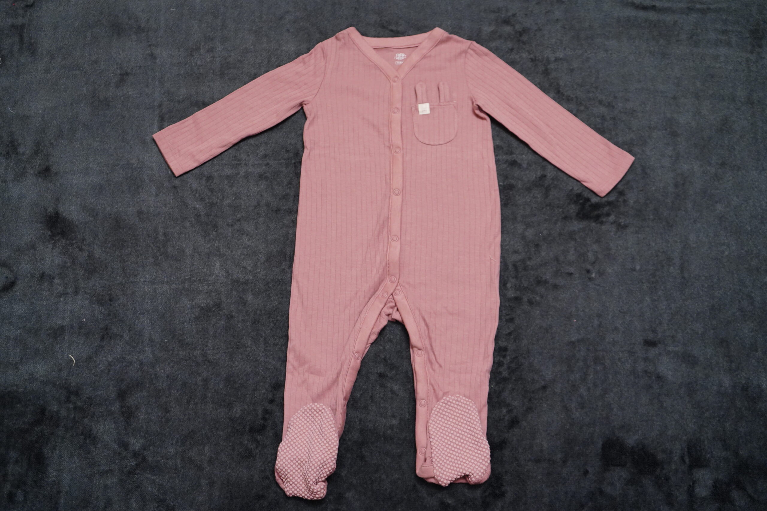 The jumpsuit features a front button closure that allows easy dressing and quick diaper changes for parents. The full sleeve design and footed style provide extra coverage, helping keep babies warm and comfortable during playtime or sleep.