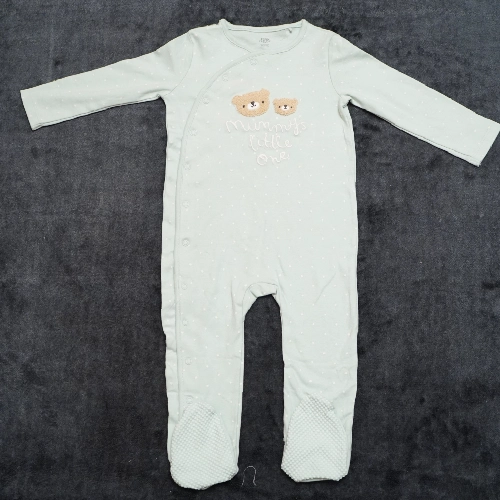 Soft cotton baby jumpsuit with full sleeves and a comfortable footed design. Gentle on delicate baby skin and perfect for daily wear and sleep.