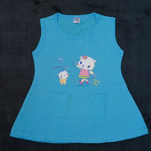 Cute Cartoon Pocket Sleeveless Cotton Frock – 3 Colors