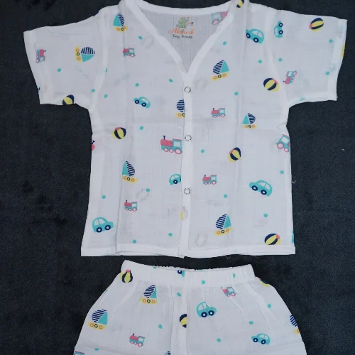 Muslin Button Jabla with Shorts – Soft & Breathable Baby Wear