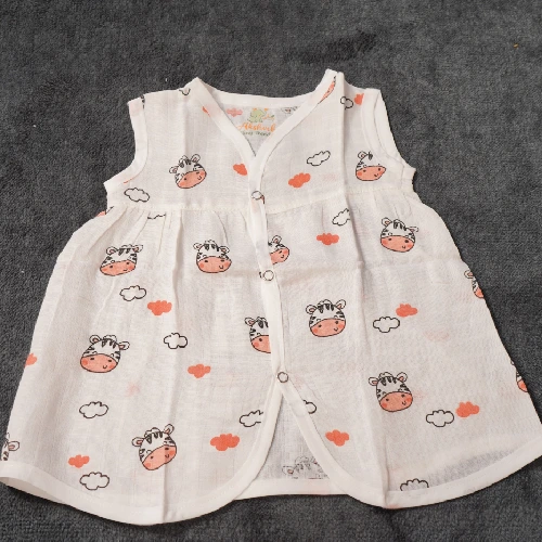 Soft muslin sleeveless chest-cut frock with front button closure and playful ice cream prints. Lightweight, breathable, and ideal for newborn daily wear.